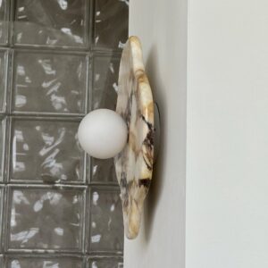 Marmorkörper. Lampenschirm aus Glas.